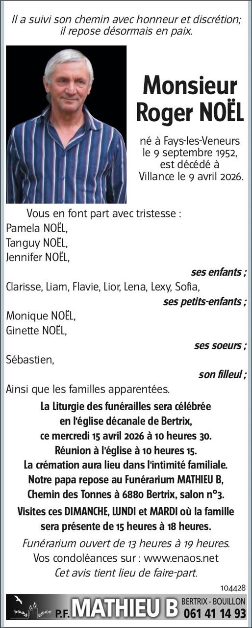 Avis de décès de Monsieur Roger NOËL