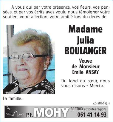 Madame Simonne dite Julia BOULANGER