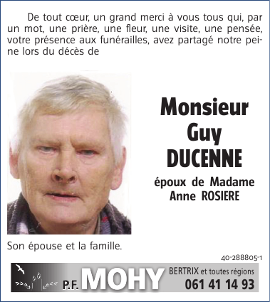 Décédé à Bertrix (6880) le lundi 26 février 2018 à l'âge de 71 ans