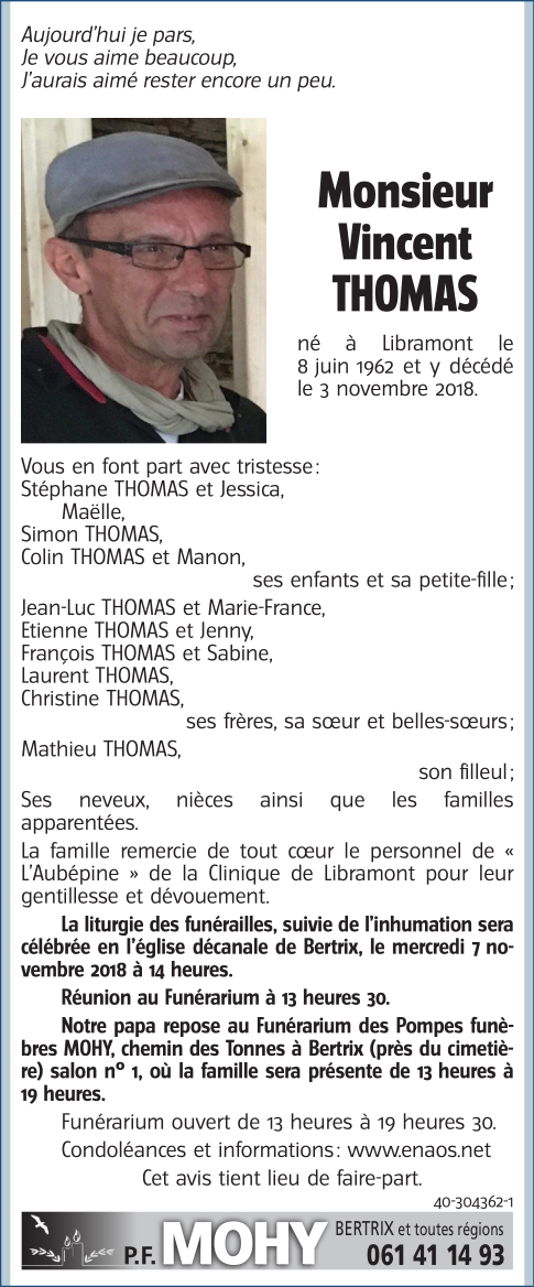 Décédée à Libramont (6800) le samedi 3 novembre 2018 à l'âge de 56 ans