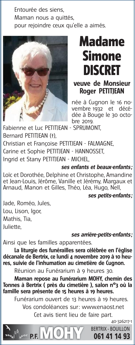 Madame Simone DISCRET