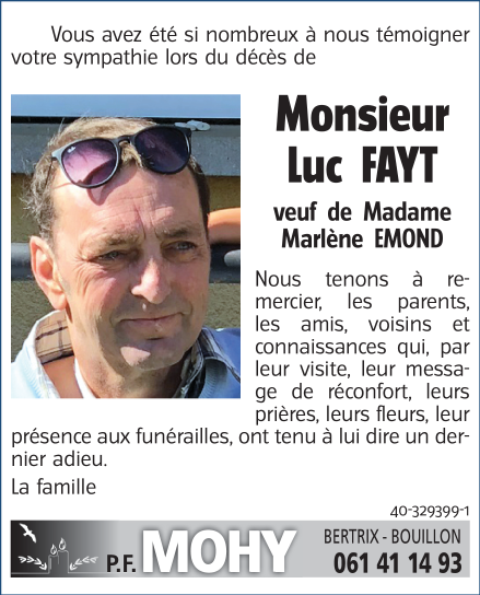 Décédé à Saint-Mard (6762) le mercredi 18 décembre 2019 à l'âge de 57 ans