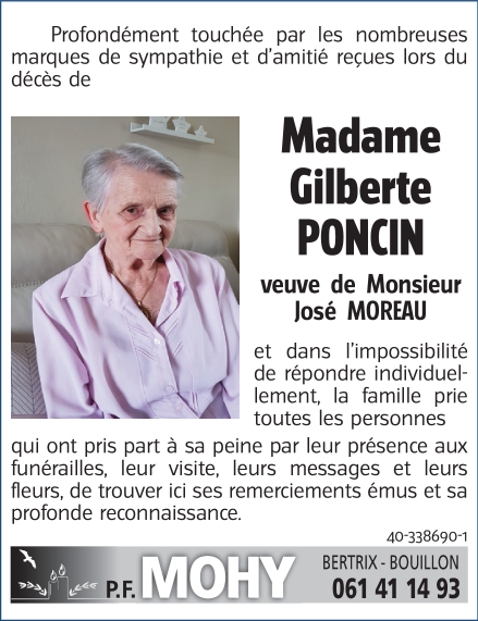 Décédée à Libramont (6800) le dimanche 10 mai 2020 à l'âge de 87 ans