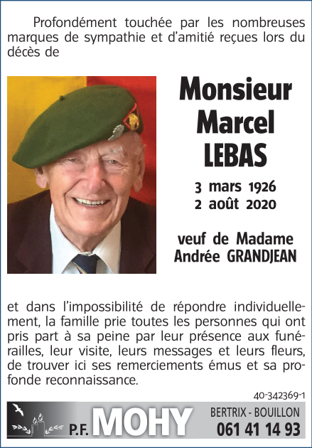Décédé à Libramont (6800) le dimanche 2 août 2020 à l'âge de 94 ans