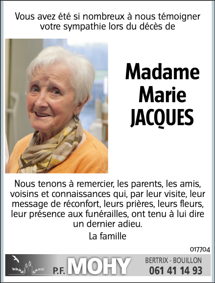 Née à Auby-sur-Semois (6880) le lundi 7 février 1938