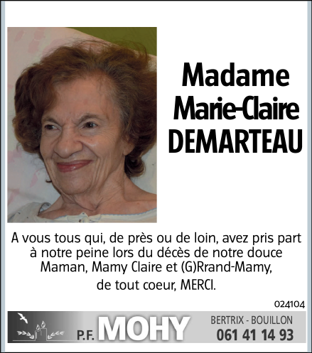 Décédée à Libramont (6800) le mardi 25 janvier 2022 à l'âge de 86 ans