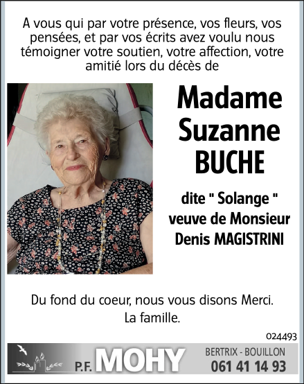 Décédée à Bouillon (6830) le samedi 12 mars 2022 à l'âge de 96 ans