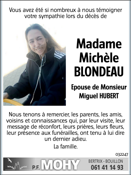 Décédée à Libramont (6800) le jeudi 28 juillet 2022 à l'âge de 51 ans
