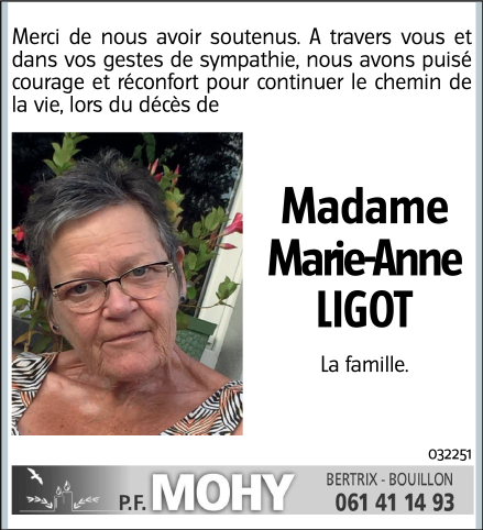 Décédée à Libramont (6800) le lundi 8 août 2022 à l'âge de 60 ans