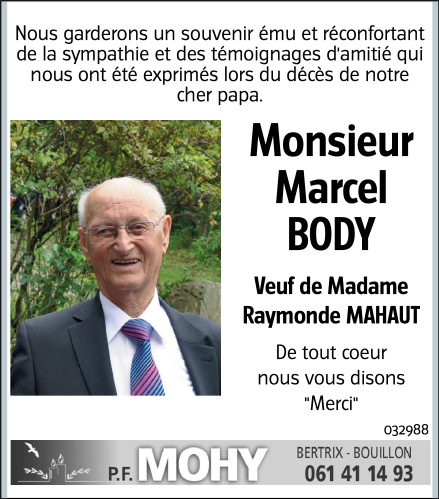 Décédé à Noirefontaine (6831) le samedi 30 juillet 2022 à l'âge de 95 ans