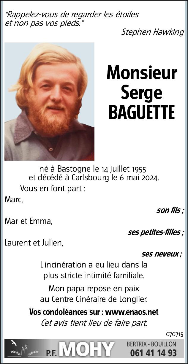 Décédé à Carlsbourg (6850) le mardi 4 juin 2024 à l'âge de 68 ans