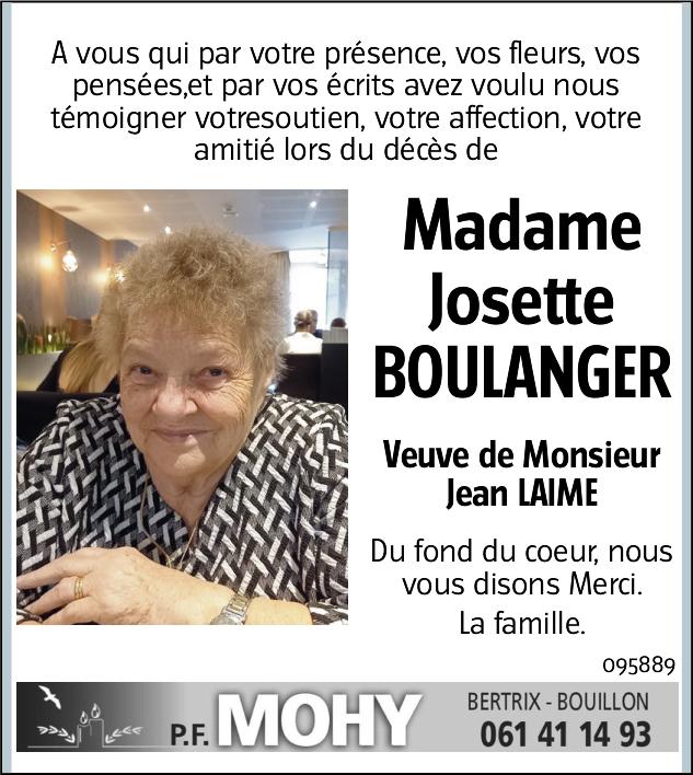 Décédée à Bouillon (6830) le dimanche 19 octobre 2025 à l'âge de 88 ans