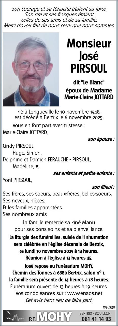 Décédé à Bertrix (6880) le vendredi 7 novembre 2025 à l'âge de 76 ans