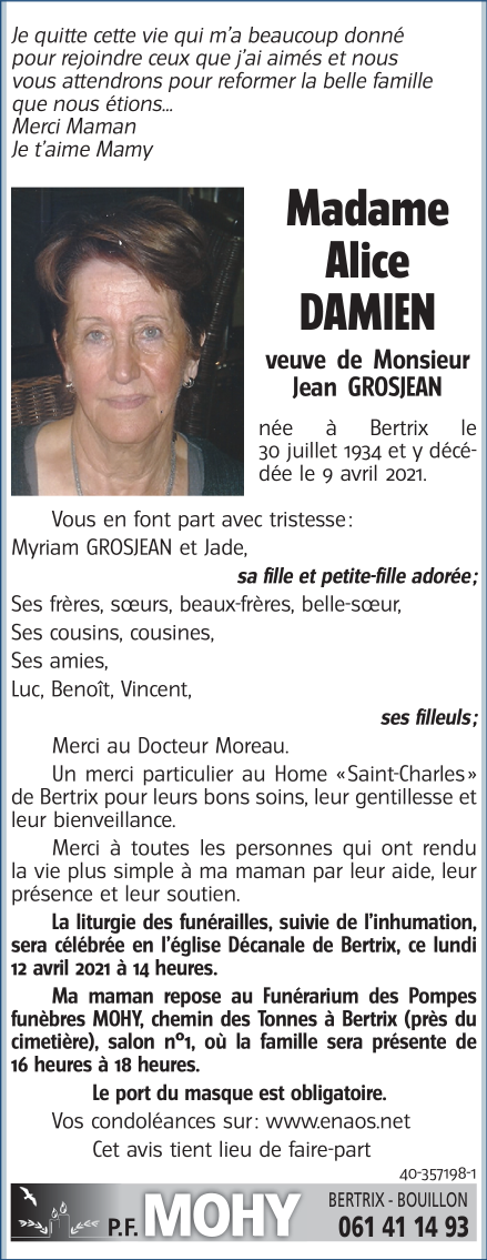 Madame Alice DAMIEN