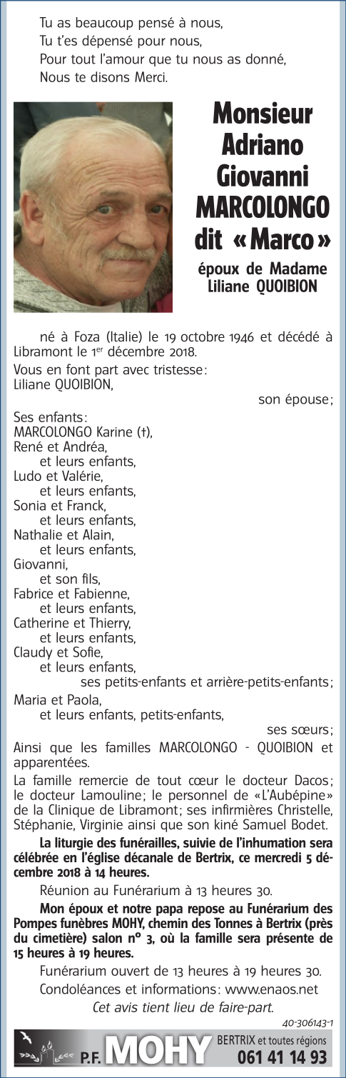 Monsieur Adriano Giovanni MARCOLONGO dit "Marco"