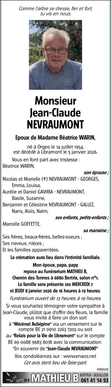 Monsieur Jean-Claude NEVRAUMONT