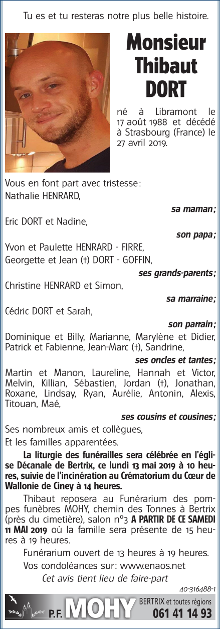 Décédé à Strasbourg (67000, France) le samedi 27 avril 2019 à l'âge de 30 ans