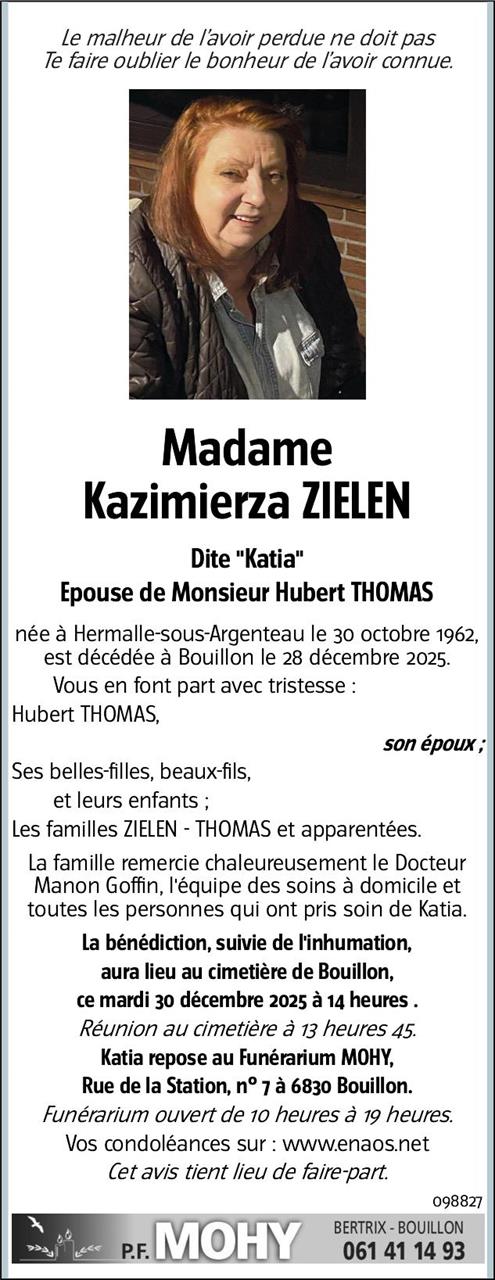 Décédée à Bouillon (6830) le dimanche 28 décembre 2025 à l'âge de 63 ans