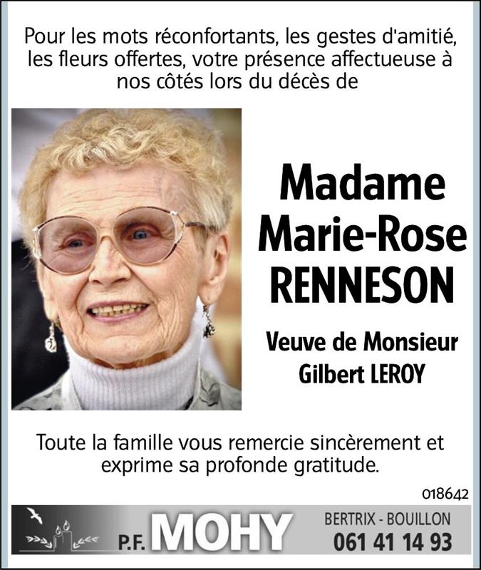 Décédée à Bouillon (6830) le mercredi 5 janvier 2022 à l'âge de 90 ans
