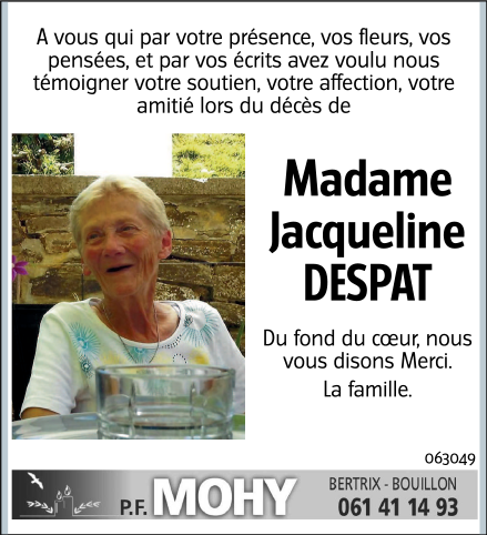 Décédée à Libramont (6800) le lundi 8 janvier 2024 à l'âge de 72 ans
