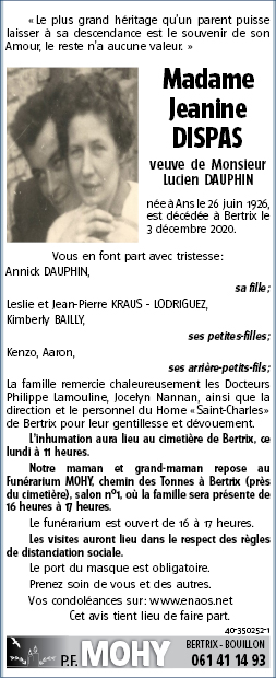 Veuve de Monsieur Lucien DAUPHIN